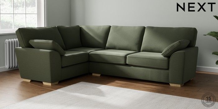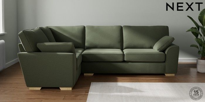 7.2.10 Stamford Large Corner Sofa - Left Hand Relaxed Linen Look Dark Green Large Square Angle - Light | Made Click here to use our website with more accessibility support, for example screen readers