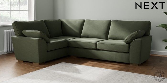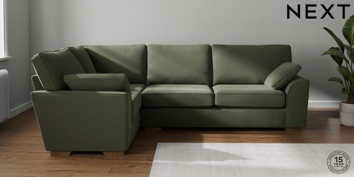 7.2.10 Stamford Large Corner Sofa - Left Hand Relaxed Linen Look Dark Green Large Square Angle - Mid | Made Click here to use our website with more accessibility support, for example screen readers