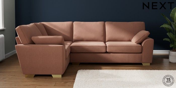 7.2.10 Stamford Large Corner Sofa - Left Hand Relaxed Linen Look Light Rust Brown Large Square Angle - Brushed Brass | Made Click here to use our website with more accessibility support, for example screen readers