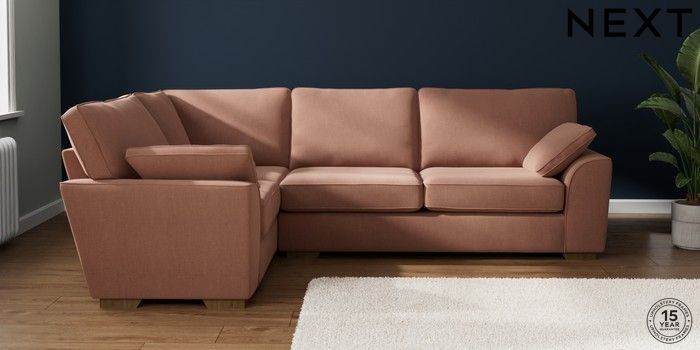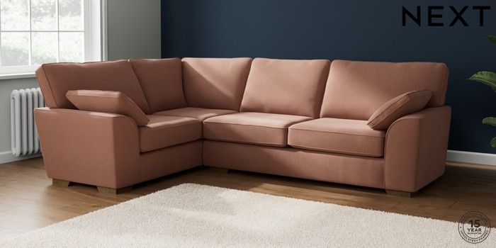 7.2.10 Stamford Large Corner Sofa - Left Hand Relaxed Linen Look Light Rust Brown Large Square Angle - Mid | Made Click here to use our website with more accessibility support, for example screen readers