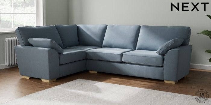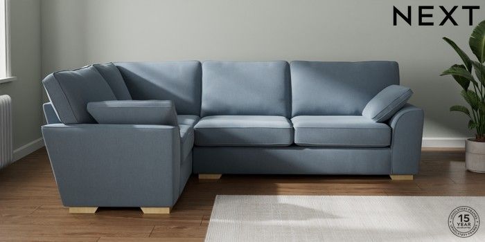 7.2.10 Stamford Large Corner Sofa - Left Hand Relaxed Linen Look Mid Blue Large Square Angle - Light | Made Click here to use our website with more accessibility support, for example screen readers