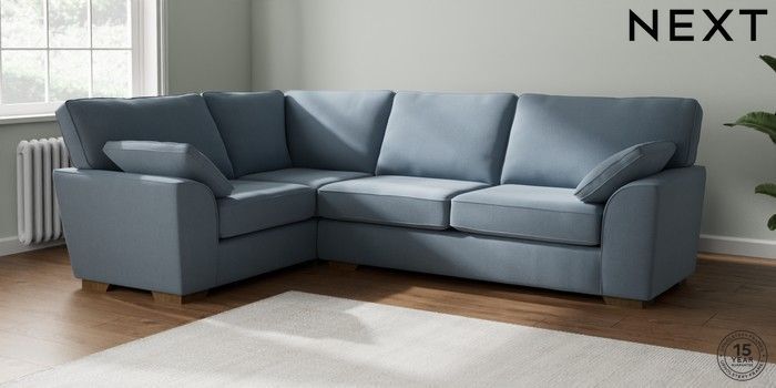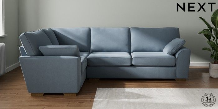 7.2.10 Stamford Large Corner Sofa - Left Hand Relaxed Linen Look Mid Blue Large Square Angle - Mid | Made Click here to use our website with more accessibility support, for example screen readers