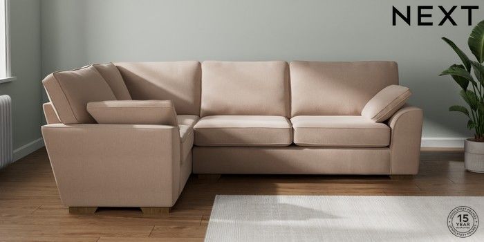7.2.10 Stamford Large Corner Sofa - Left Hand Relaxed Linen Look Mid Natural Large Square Angle - Mid | Made Click here to use our website with more accessibility support, for example screen readers