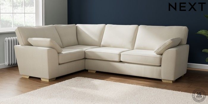 7.2.10 Stamford Large Corner Sofa - Left Hand Relaxed Linen Look Oyster Large Square Angle - Light | Made Click here to use our website with more accessibility support, for example screen readers
