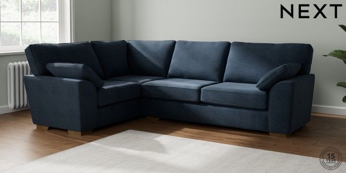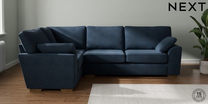 7.2.10 Stamford Large Corner Sofa - Left Hand Ripple Chenille Dark Blue Large Square Angle - Mid | Made Click here to use our website with more accessibility support, for example screen readers