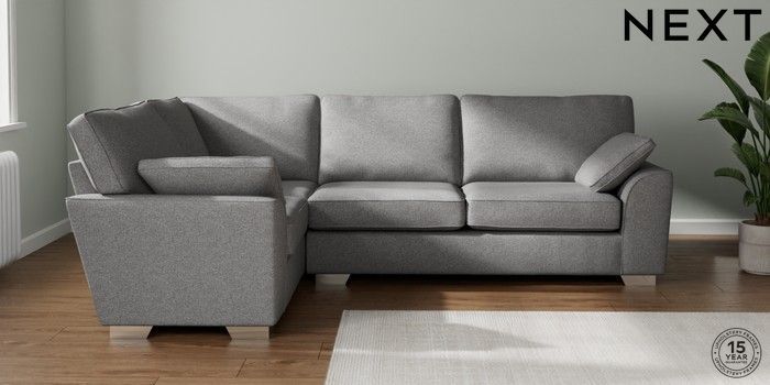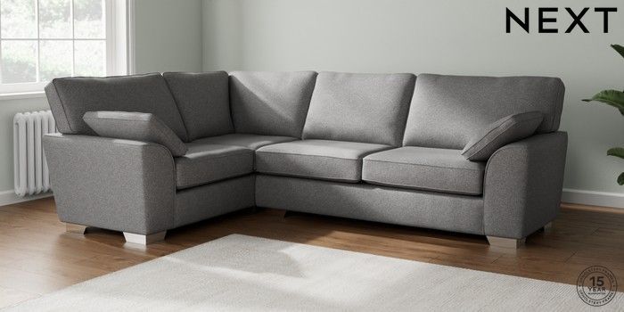 7.2.10 Stamford Large Corner Sofa - Left Hand Studio Chenille Mid Grey Large Square Angle - Chrome Metal | Made Click here to use our website with more accessibility support, for example screen readers