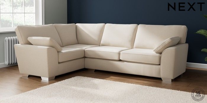 7.2.10 Stamford Large Corner Sofa - Left Hand Studio Chenille Oyster Large Square Angle - Chrome Metal | Made Click here to use our website with more accessibility support, for example screen readers