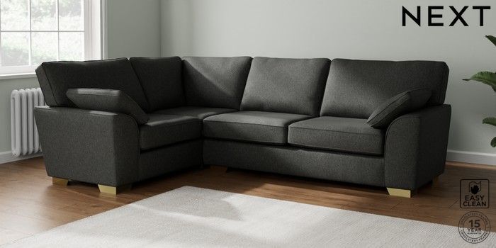 7.2.10 Stamford Large Corner Sofa - Left Hand Tweedy Blend Easy Clean Charcoal Grey Large Square Angle - Brushed Brass | Made Click here to use our website with more accessibility support, for example screen readers