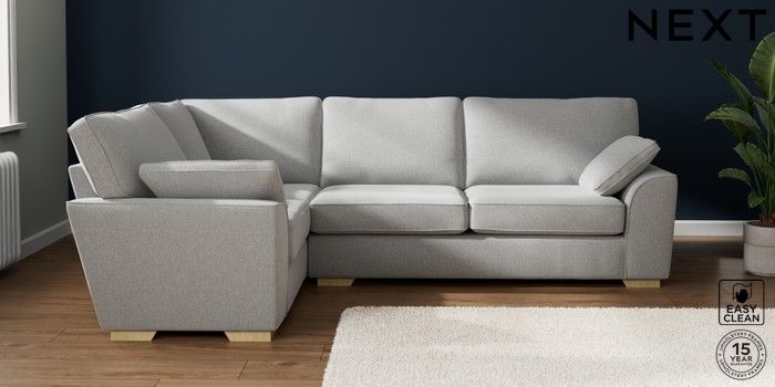 7.2.10 Stamford Large Corner Sofa - Left Hand Tweedy Blend Easy Clean Light Silver Grey Large Square Angle - Light | Made Click here to use our website with more accessibility support, for example screen readers
