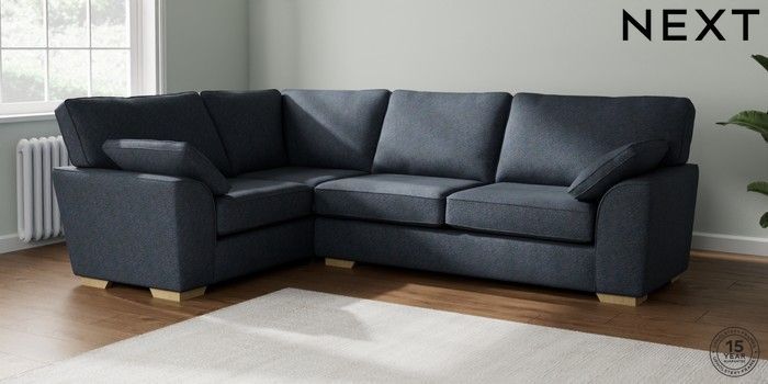 7.2.10 Stamford Large Corner Sofa - Left Hand Tweedy Chenille Navy Blue Large Square Angle - Light | Made Click here to use our website with more accessibility support, for example screen readers