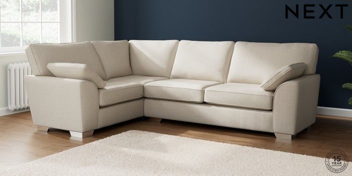 7.2.10 Stamford Large Corner Sofa - Left Hand Tweedy Chenille Oyster Large Square Angle - Chrome Metal | Made Click here to use our website with more accessibility support, for example screen readers