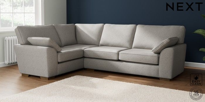 7.2.10 Stamford Large Corner Sofa - Left Hand Woven Chenille Easy Clean Light Grey Large Square Angle - Mid | Made Click here to use our website with more accessibility support, for example screen readers