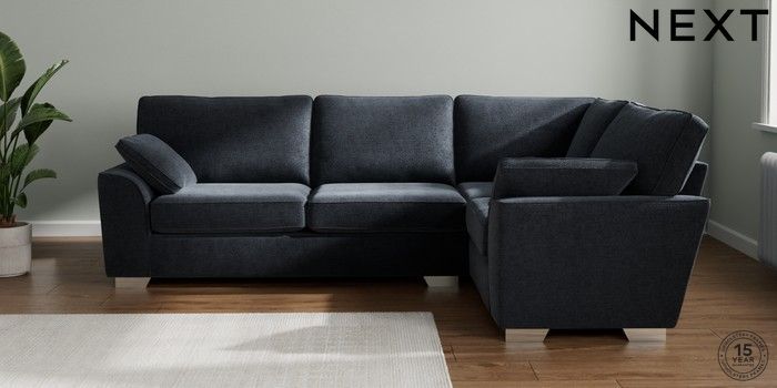 7.2.10 Stamford Large Corner Sofa - Right Hand Boucle Chenille Dark Slate Blue Large Square Angle - Chrome Metal | Made Click here to use our website with more accessibility support, for example screen readers