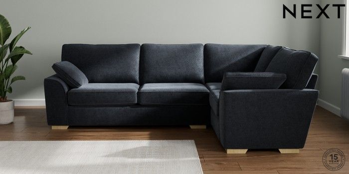 7.2.10 Stamford Large Corner Sofa - Right Hand Boucle Chenille Dark Slate Blue Large Square Angle - Light | Made Click here to use our website with more accessibility support, for example screen readers