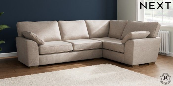 7.2.10 Stamford Large Corner Sofa - Right Hand Boucle Chenille Light Natural Large Square Angle - Mid | Made Click here to use our website with more accessibility support, for example screen readers