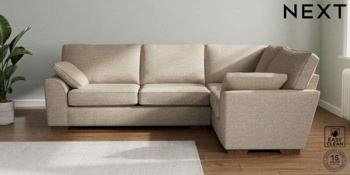 7.2.10 Stamford Large Corner Sofa - Right Hand Boucle Weave Easy Clean Dark Natural Large Square Angle - Mid | Made Click here to use our website with more accessibility support, for example screen readers