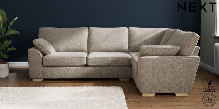 7.2.10 Stamford Large Corner Sofa - Right Hand Chunky Boucle Easy Clean Dove Large Square Angle - Light | Made Click here to use our website with more accessibility support, for example screen readers