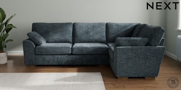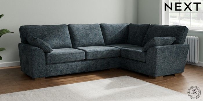 7.2.10 Stamford Large Corner Sofa - Right Hand Chunky Chenille Dark Navy Blue Large Square Angle - Mid | Made Click here to use our website with more accessibility support, for example screen readers