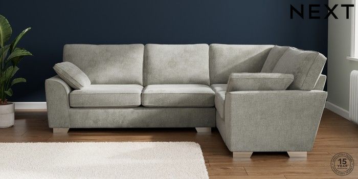 7.2.10 Stamford Large Corner Sofa - Right Hand Chunky Chenille Light Grey Large Square Angle - Chrome Metal | Made Click here to use our website with more accessibility support, for example screen readers
