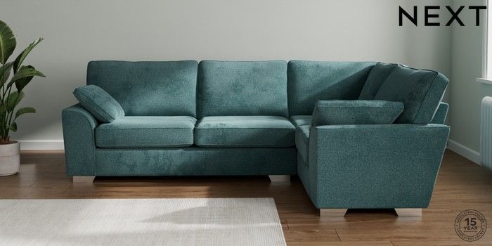 7.2.10 Stamford Large Corner Sofa - Right Hand Chunky Chenille Mid Teal Green Large Square Angle - Chrome Metal | Made Click here to use our website with more accessibility support, for example screen readers