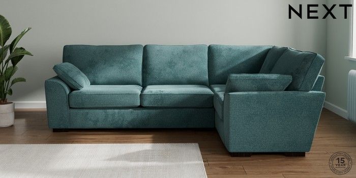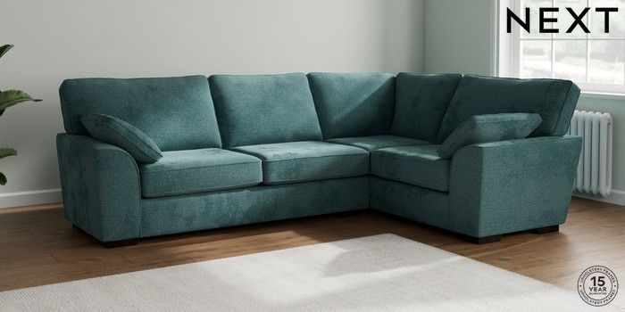 7.2.10 Stamford Large Corner Sofa - Right Hand Chunky Chenille Mid Teal Green Large Square Angle - Dark | Made Click here to use our website with more accessibility support, for example screen readers