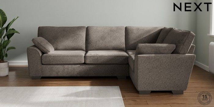 7.2.10 Stamford Large Corner Sofa - Right Hand Chunky Chenille Mink Brown Large Square Angle - Gunmetal | Made Click here to use our website with more accessibility support, for example screen readers