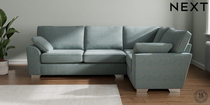 7.2.10 Stamford Large Corner Sofa - Right Hand Chunky Marl Mid Blue Large Square Angle - Chrome Metal | Made Click here to use our website with more accessibility support, for example screen readers