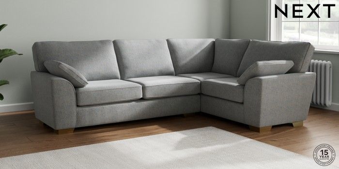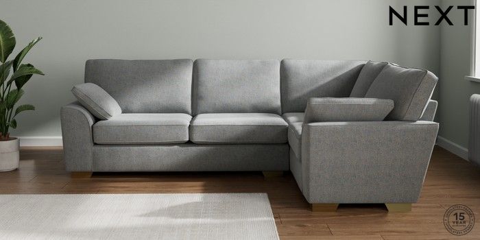 7.2.10 Stamford Large Corner Sofa - Right Hand Chunky Marl Mid Grey Large Square Angle - Brushed Brass | Made Click here to use our website with more accessibility support, for example screen readers
