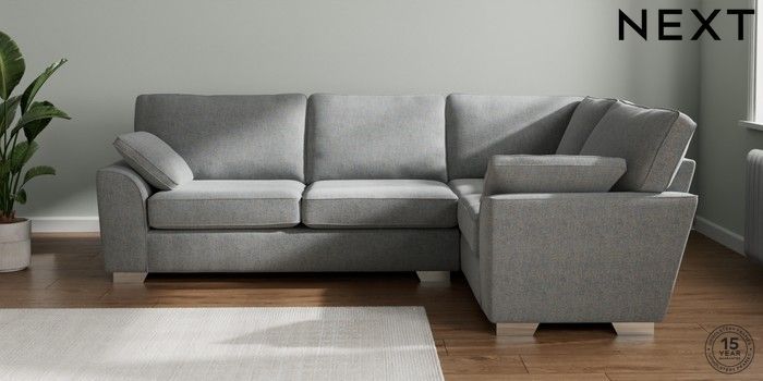 7.2.10 Stamford Large Corner Sofa - Right Hand Chunky Marl Mid Grey Large Square Angle - Chrome Metal | Made Click here to use our website with more accessibility support, for example screen readers