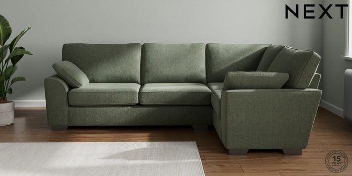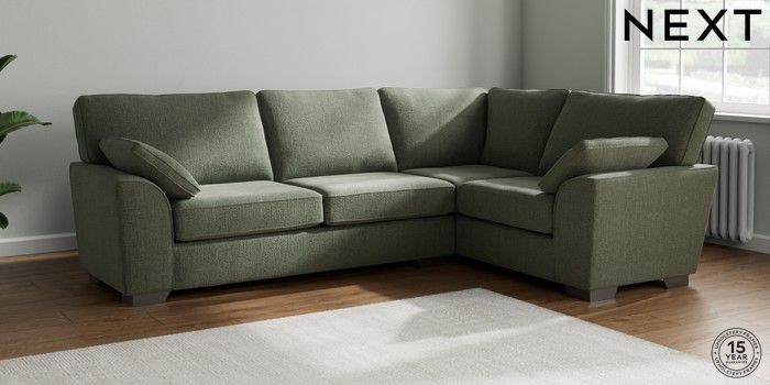 7.2.10 Stamford Large Corner Sofa - Right Hand Chunky Texture Mid Forest Green Large Square Angle - Gunmetal | Made Click here to use our website with more accessibility support, for example screen readers