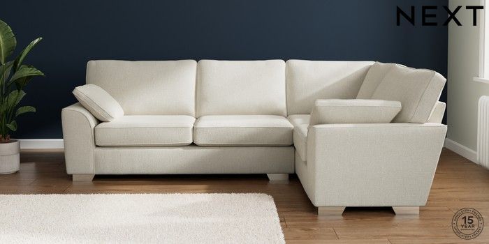 7.2.10 Stamford Large Corner Sofa - Right Hand Chunky Texture Oyster Large Square Angle - Chrome Metal | Made Click here to use our website with more accessibility support, for example screen readers