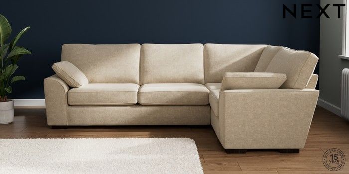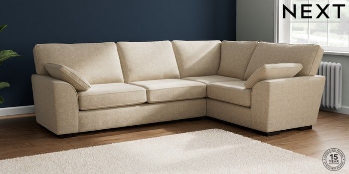 7.2.10 Stamford Large Corner Sofa - Right Hand Chunky Weave Cream Large Square Angle - Dark | Made Click here to use our website with more accessibility support, for example screen readers