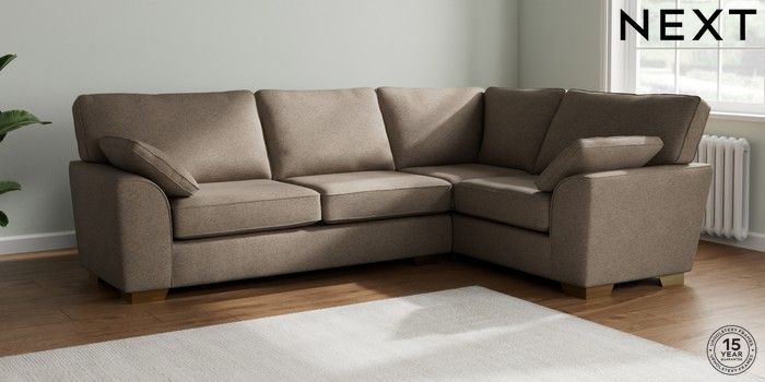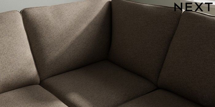 7.2.10 Stamford Large Corner Sofa - Right Hand Chunky Weave Dark Natural Large Square Angle - Brushed Brass | Made Click here to use our website with more accessibility support, for example screen readers