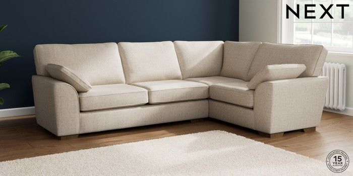 7.2.10 Stamford Large Corner Sofa - Right Hand Chunky Weave Mid Natural Large Square Angle - Mid | Made Click here to use our website with more accessibility support, for example screen readers
