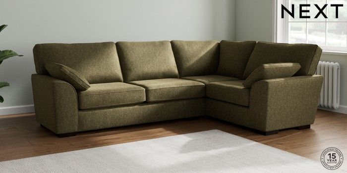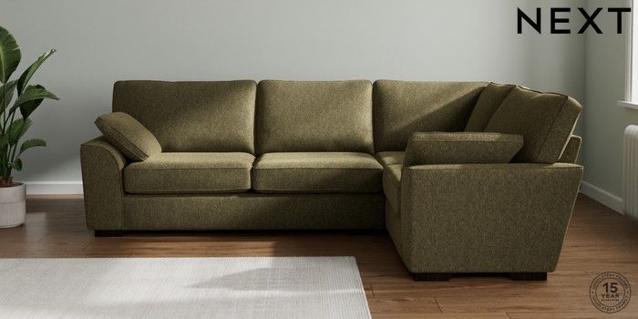7.2.10 Stamford Large Corner Sofa - Right Hand Cotswold Chenille Dark Green Large Square Angle - Dark | Made Click here to use our website with more accessibility support, for example screen readers