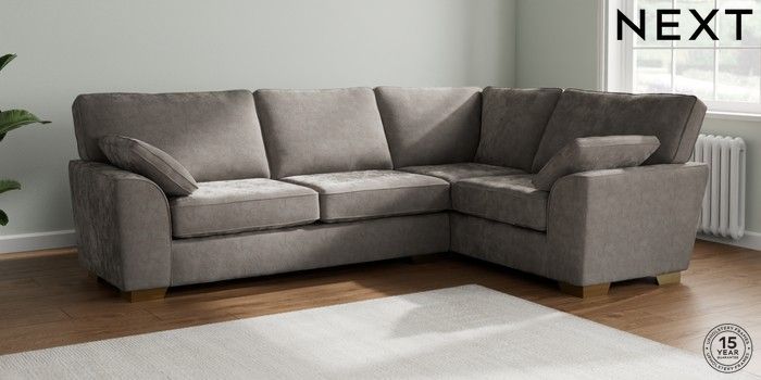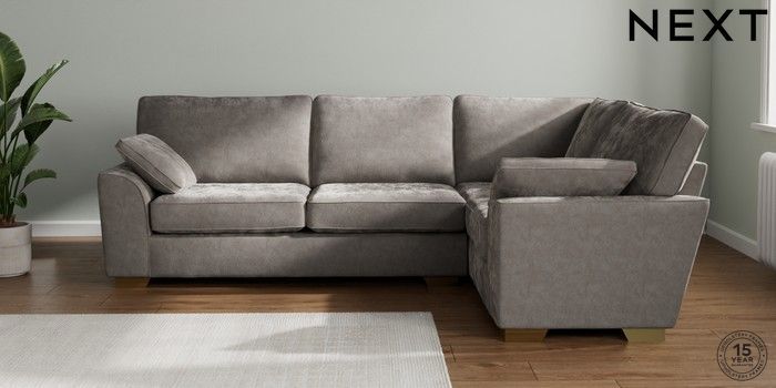 7.2.10 Stamford Large Corner Sofa - Right Hand Distressed Velour French Grey Large Square Angle - Brushed Brass | Made Click here to use our website with more accessibility support, for example screen readers