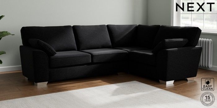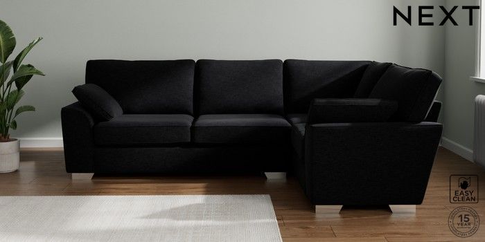 7.2.10 Stamford Large Corner Sofa - Right Hand Fine Chenille Easy Clean Black Large Square Angle - Chrome Metal | Made Click here to use our website with more accessibility support, for example screen readers