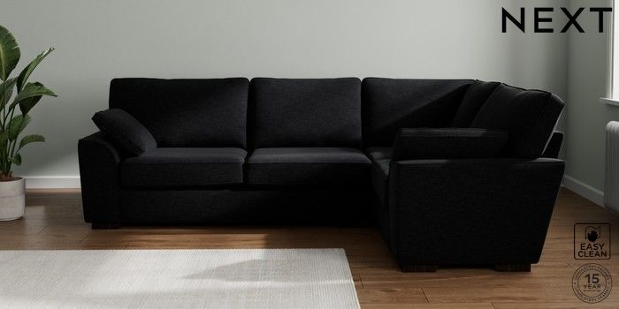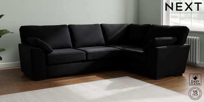 7.2.10 Stamford Large Corner Sofa - Right Hand Fine Chenille Easy Clean Black Large Square Angle - Dark | Made Click here to use our website with more accessibility support, for example screen readers