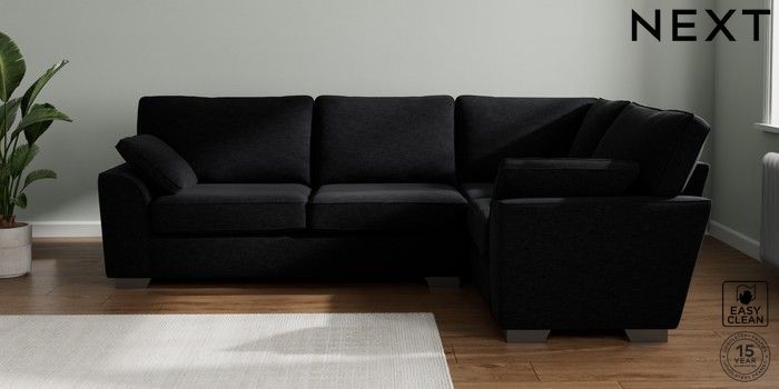 7.2.10 Stamford Large Corner Sofa - Right Hand Fine Chenille Easy Clean Black Large Square Angle - Gunmetal | Made Click here to use our website with more accessibility support, for example screen readers
