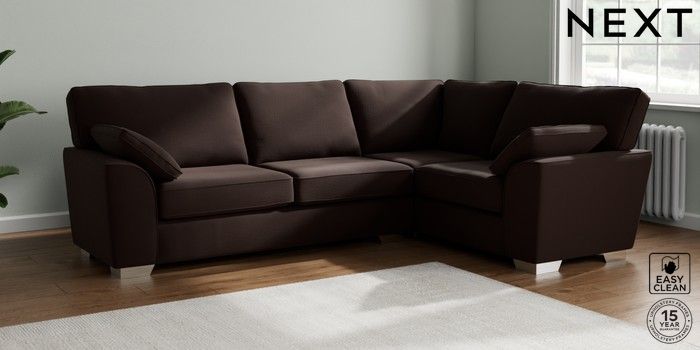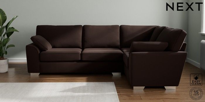 7.2.10 Stamford Large Corner Sofa - Right Hand Fine Chenille Easy Clean Chocolate Brown Large Square Angle - Chrome Metal | Made Click here to use our website with more accessibility support, for example screen readers