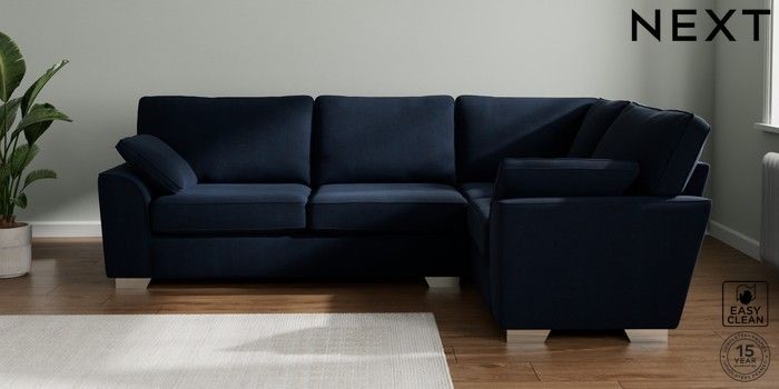 7.2.10 Stamford Large Corner Sofa - Right Hand Fine Chenille Easy Clean Dark Navy Blue Large Square Angle - Chrome Metal | Made Click here to use our website with more accessibility support, for example screen readers