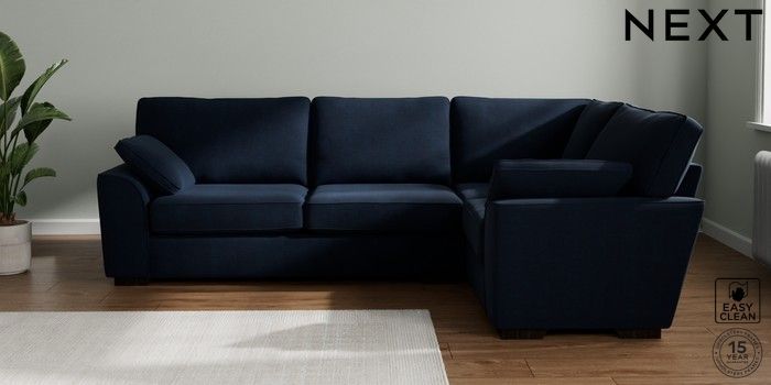 7.2.10 Stamford Large Corner Sofa - Right Hand Fine Chenille Easy Clean Dark Navy Blue Large Square Angle - Dark | Made Click here to use our website with more accessibility support, for example screen readers