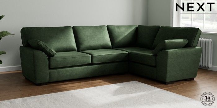7.2.10 Stamford Large Corner Sofa - Right Hand Luxe Chenille Dark Green Large Square Angle - Dark | Made Click here to use our website with more accessibility support, for example screen readers