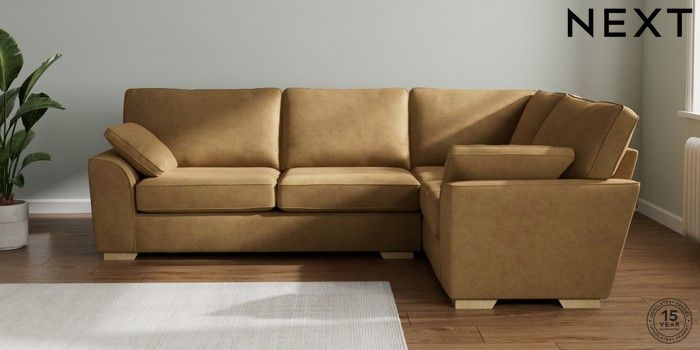 7.2.10 Stamford Large Corner Sofa - Right Hand Luxe Chenille Honey Yellow Large Square Angle - Light | Made Click here to use our website with more accessibility support, for example screen readers