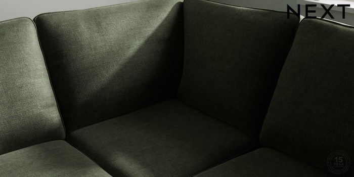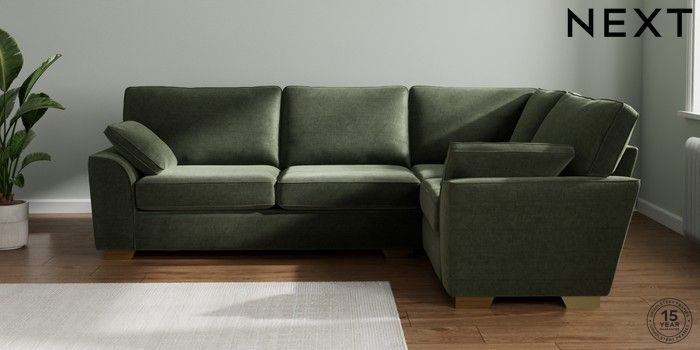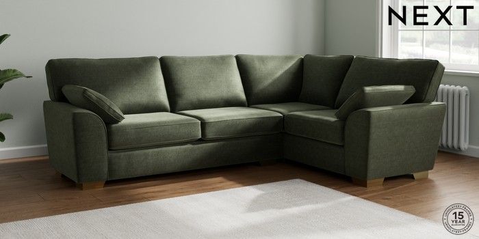 7.2.10 Stamford Large Corner Sofa - Right Hand Luxe Chenille Mid Green Large Square Angle - Brushed Brass | Made Click here to use our website with more accessibility support, for example screen readers