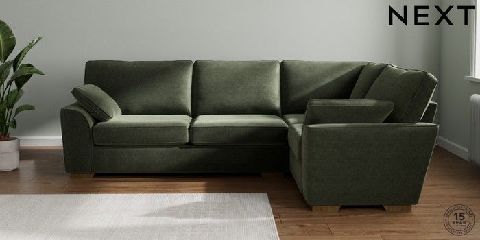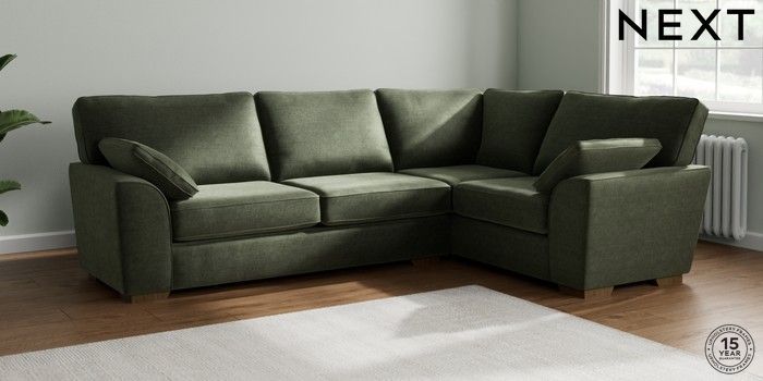 7.2.10 Stamford Large Corner Sofa - Right Hand Luxe Chenille Mid Green Large Square Angle - Mid | Made Click here to use our website with more accessibility support, for example screen readers