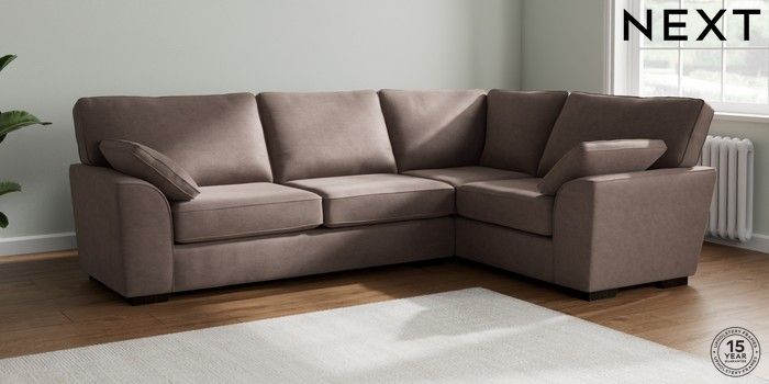 7.2.10 Stamford Large Corner Sofa - Right Hand Luxe Chenille Mink Brown Large Square Angle - Dark | Made Click here to use our website with more accessibility support, for example screen readers