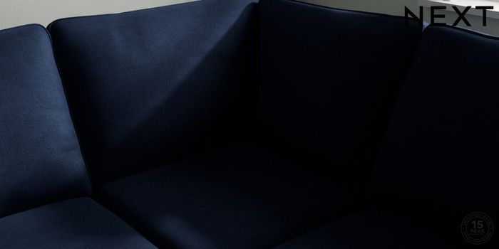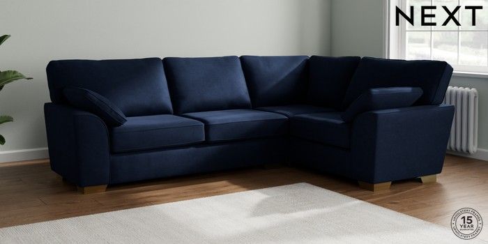 7.2.10 Stamford Large Corner Sofa - Right Hand Luxe Chenille Navy Blue Large Square Angle - Brushed Brass | Made Click here to use our website with more accessibility support, for example screen readers