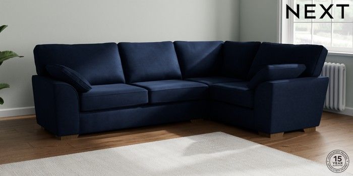 7.2.10 Stamford Large Corner Sofa - Right Hand Luxe Chenille Navy Blue Large Square Angle - Mid | Made Click here to use our website with more accessibility support, for example screen readers