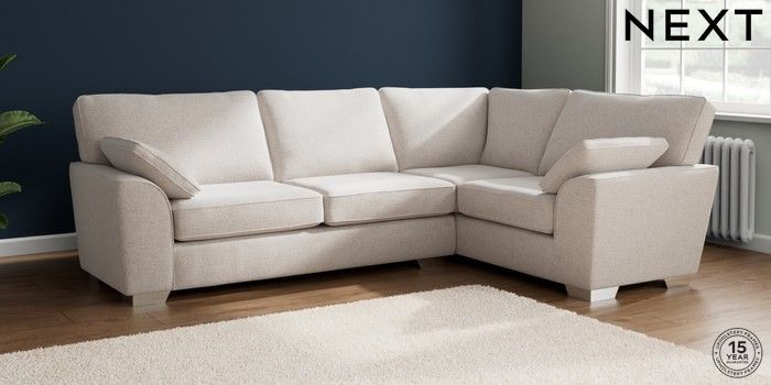 7.2.10 Stamford Large Corner Sofa - Right Hand Multi Weave Oyster Large Square Angle - Chrome Metal | Made Click here to use our website with more accessibility support, for example screen readers
